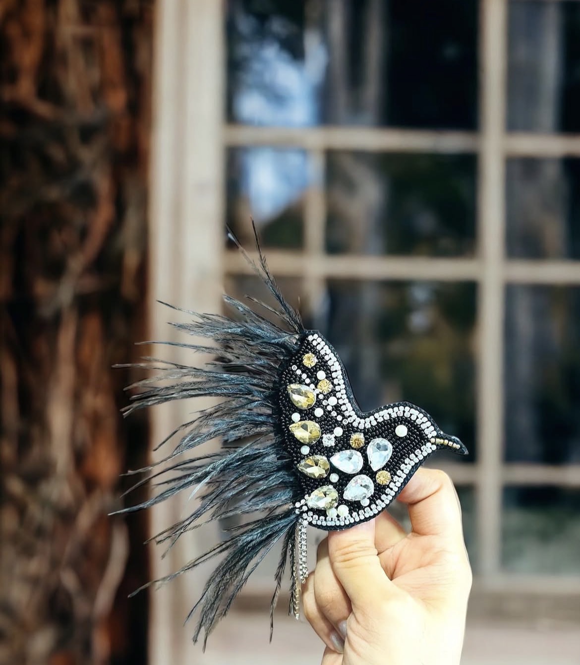 Black bird brooch