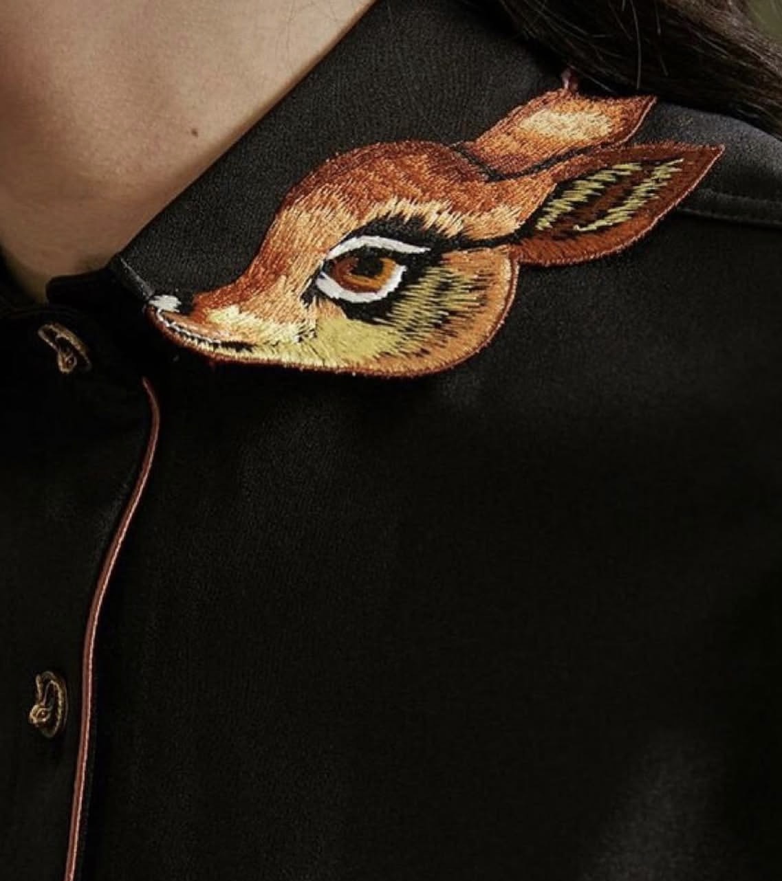 Add a touch of elegance and woodland charm to your outfit with our beautifully handcrafted Deer Face Collar Brooch. Designed with intricate hand embroidery, this unique accessory captures the graceful beauty of a deer while adding a sophisticated statement to your collar, lapel, or scarf.