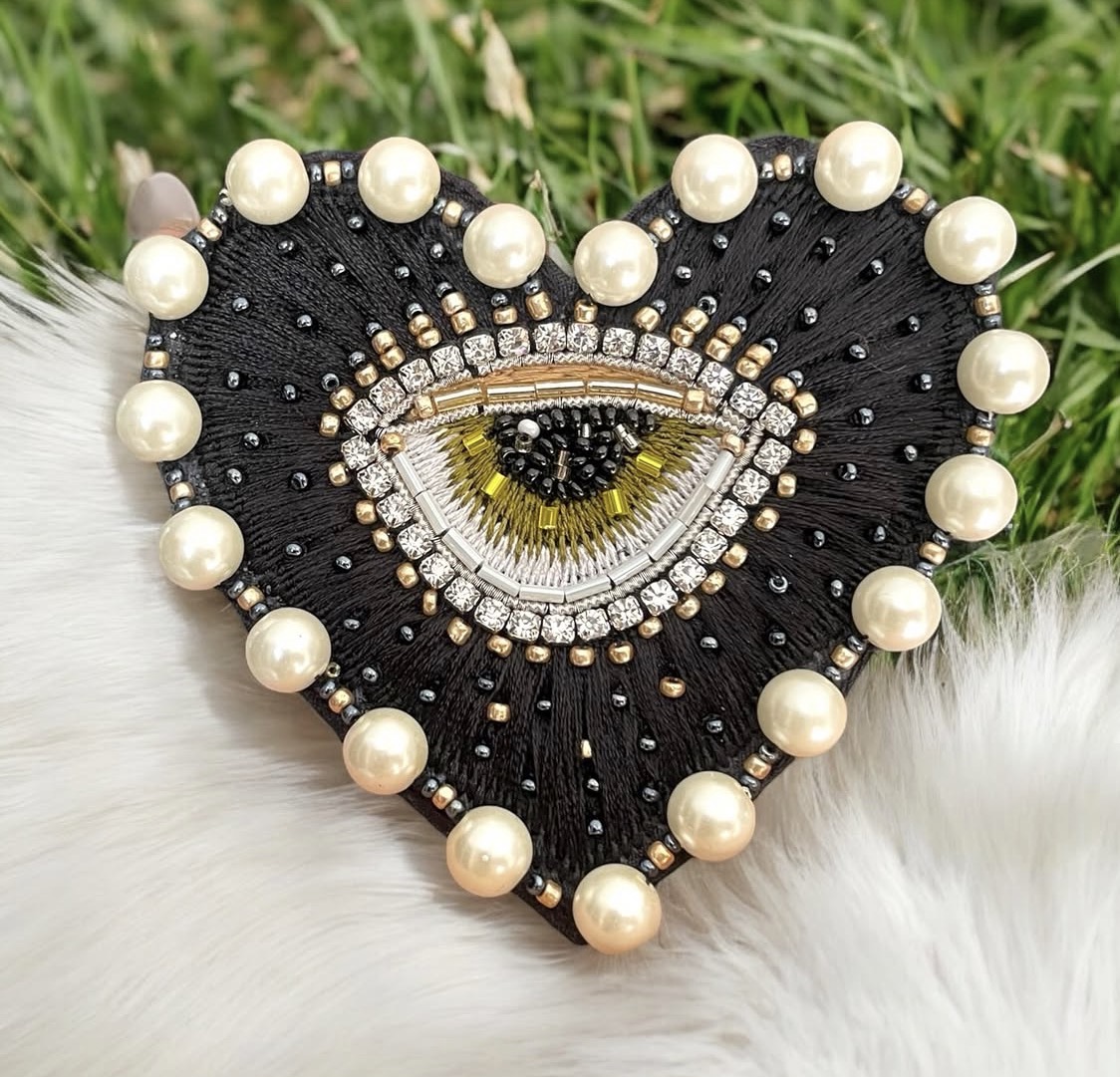 Protect your style with meaning using this handmade Evil Eye brooch by Broochthyself. Inspired by the traditional nazar symbol, this brooch is believed to ward off negativity while adding a chic, modern touch to your outfit.