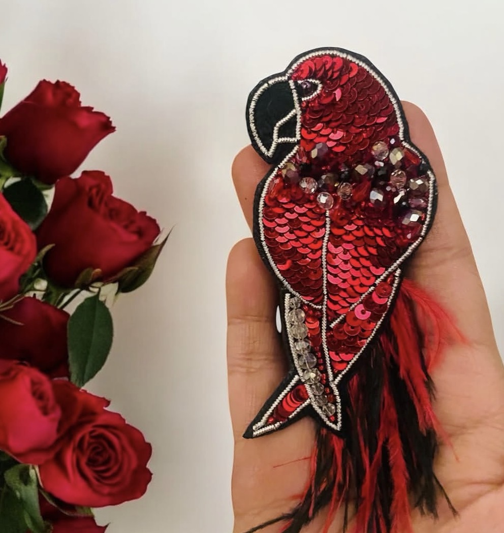 If you love handmade brooches, embroidered bird brooches, statement accessories, and artistic fashion jewelry, this Red & Black Parrot Brooch is a perfect addition to your collection.
