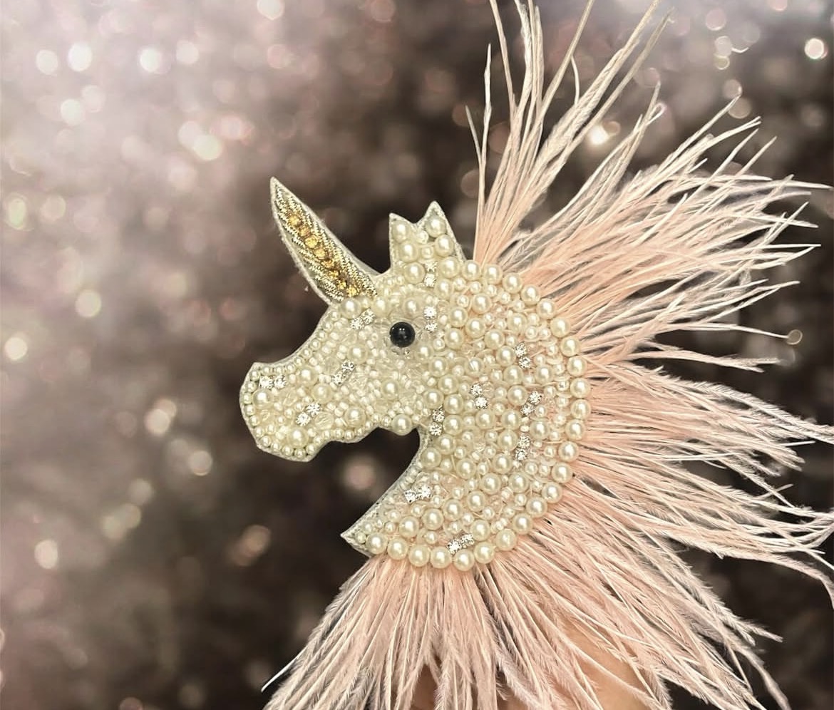 This handmade unicorn brooch with feathers is a magical statement accessory designed for lovers of fantasy and unique jewellery. Carefully crafted with intricate details, it adds charm to jackets, dresses, bags, and scarves.
